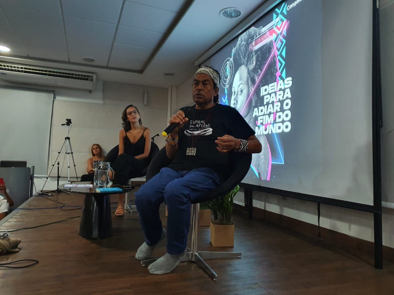 Questionado sobre o que seriam as ideias para adiar o fim do mundo, Krenak responde: “é uma parábola. É assumir o lugar de abismo em que nós estamos compartilhando e a partir dele adiar isso. Não é uma promessa de nada: é um chamado para conversar. As respostas que as pessoas dão a encontros como estes, é porque elas estão aceitando conversar. Quando nós estamos fazendo isso, nós estamos adiando, por alguns minutos, algum fim de mundo”.