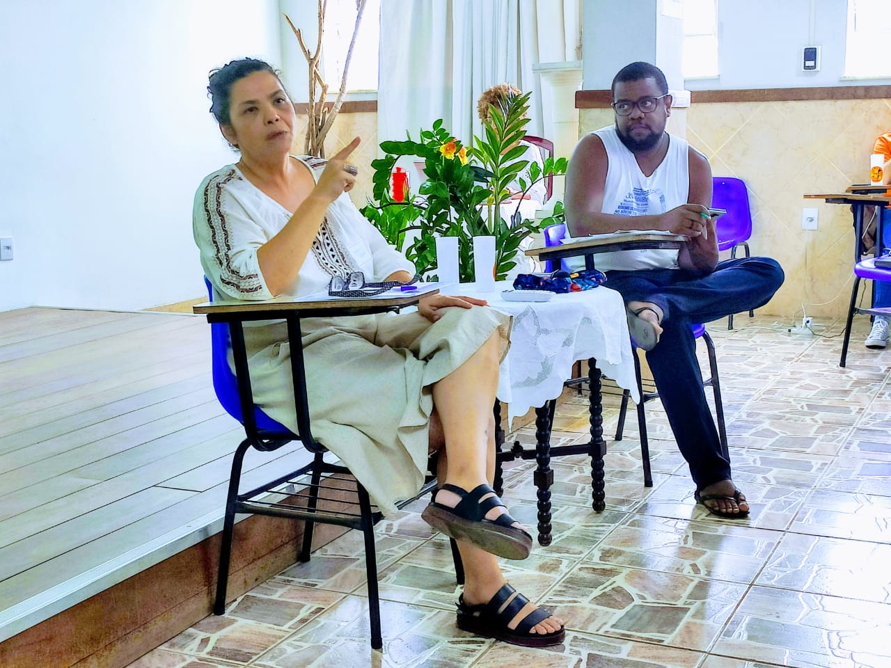 Após uma rodada de apresentações e expectativas em relação ao curso, partimos para a primeira oficina do dia sobre autocuidado e luta política, com a jornalista e terapeuta Sueide Kintê. Ela destacou que se apropriar de ferramentas de autocuidado é estratégico para ativistas do campo de direitos humanos, especialmente por conta do cenário político insalubre no Brasil. “Todo ativista é um cuidador”, afirmou.