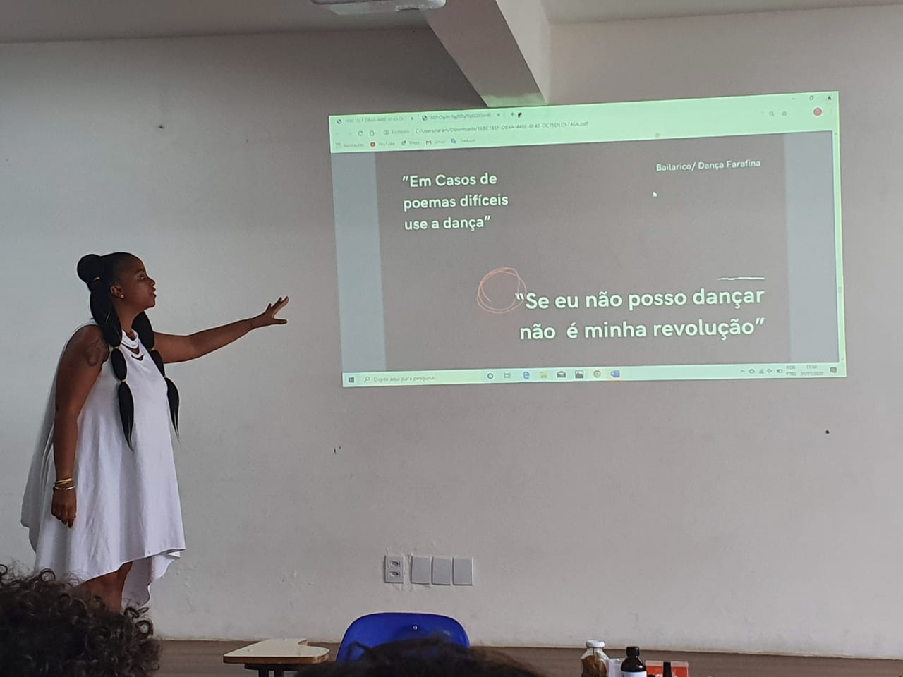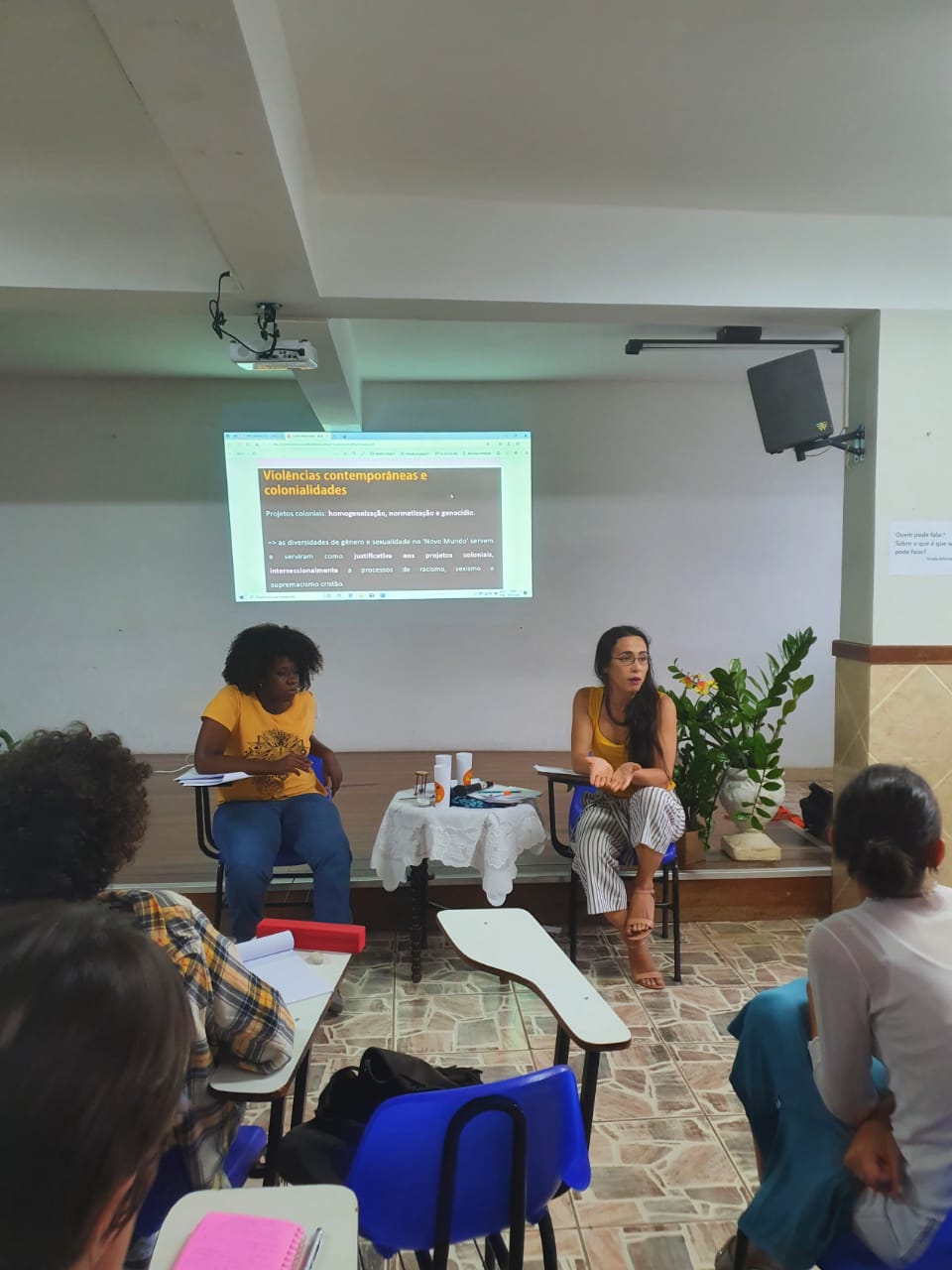 Na mesa seguinte, o tema foi exatamente esse: a interseccionalidade na ação política. Ariana Mara Silva, graduada em Relações Internacionais e História e doutoranda no Programa de Estudos Interdisciplinares Sobre a Mulher da Universidade Federal da Bahia (UFBA), e Viviane Vergueiro, ativista transfeminista, integrante do Coletivo De Trans pra Frente e doutoranda em Estudos sobre Mulheres, Gêneros e Feminismos na UFBA, dividiram a aula, que começou com a apresentação do conceito de interseccionalidade, cunhado por Kimberlé Crenshaw, feminista negra norte-americana.